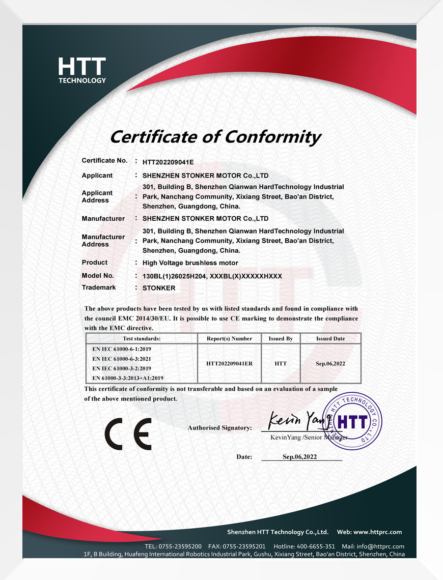 CE证书-高压无刷电机EMC